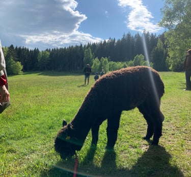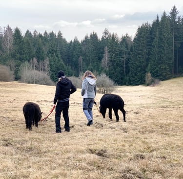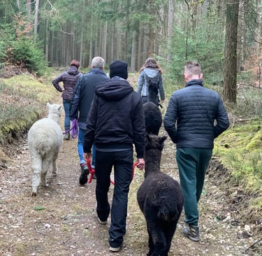 Alpakas, Wald und sanfte Bewegung schaffen Raum zum Durchatmen - für mehr Gelassenheit, Fokus und Wohlbefinden im Arbeitsalltag.