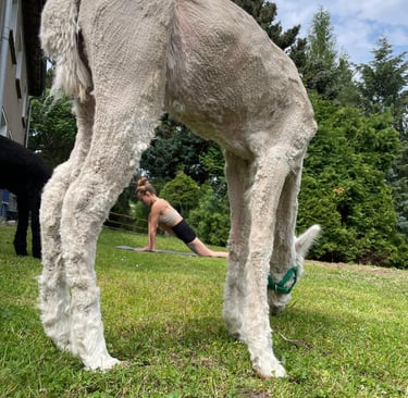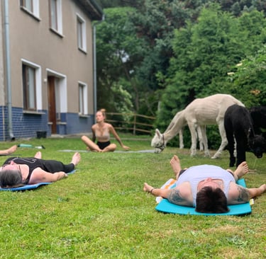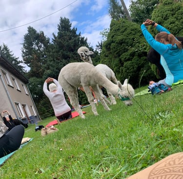 -Alpaka-Spaziergang und Yoga-
