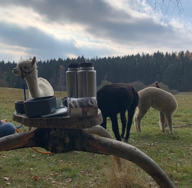 Bei unserer Alpakawanderung erleben Teams, wie entschleunigend gemeinsames Gehen, führen und Loslassen sein kann - gekrönt von einer gemütlichen Brotzeit.